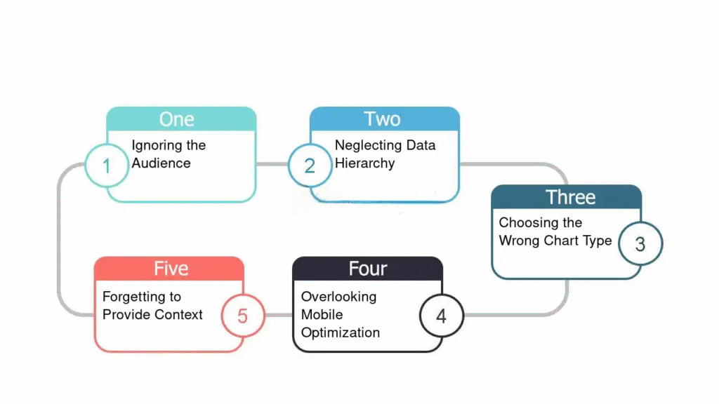 # Even with the best data, poor visualization choices can reduce impact and clarity. Here are frequent errors to watch for: